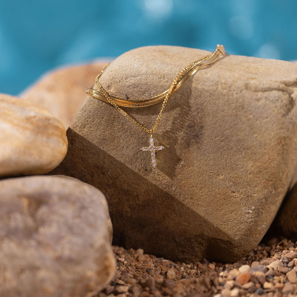 ✨ Dainty CZ Cross Charm – A subtle, radiant sparkle that catches the sunlight and the eye.